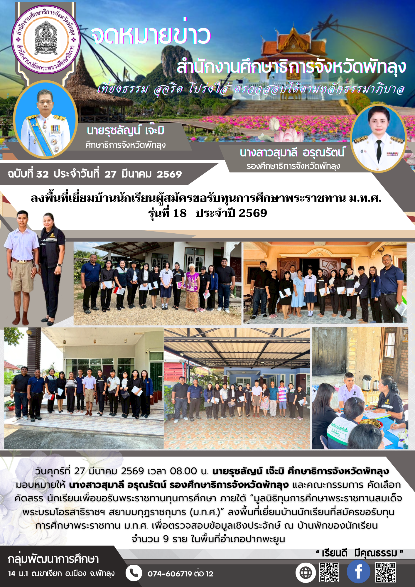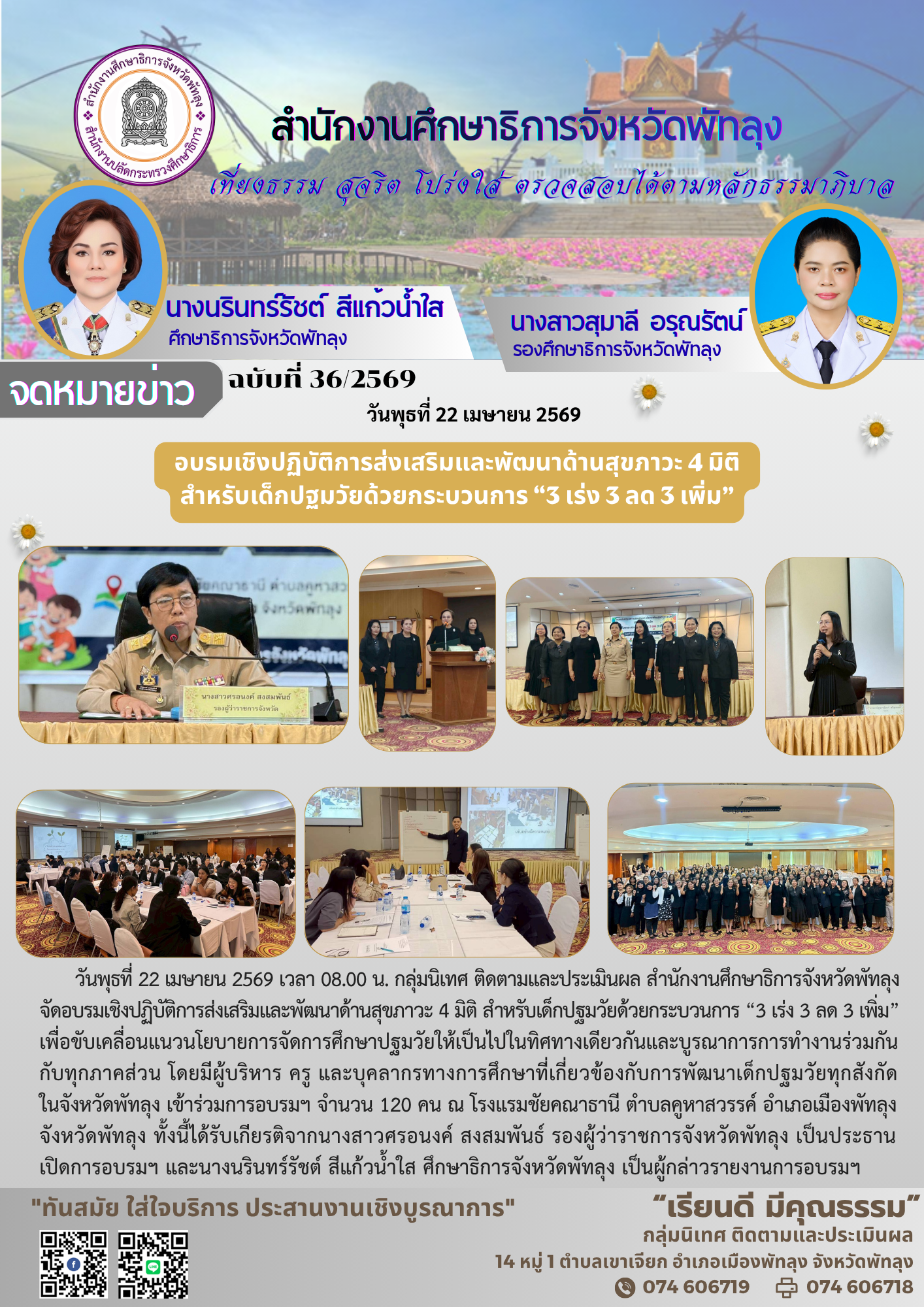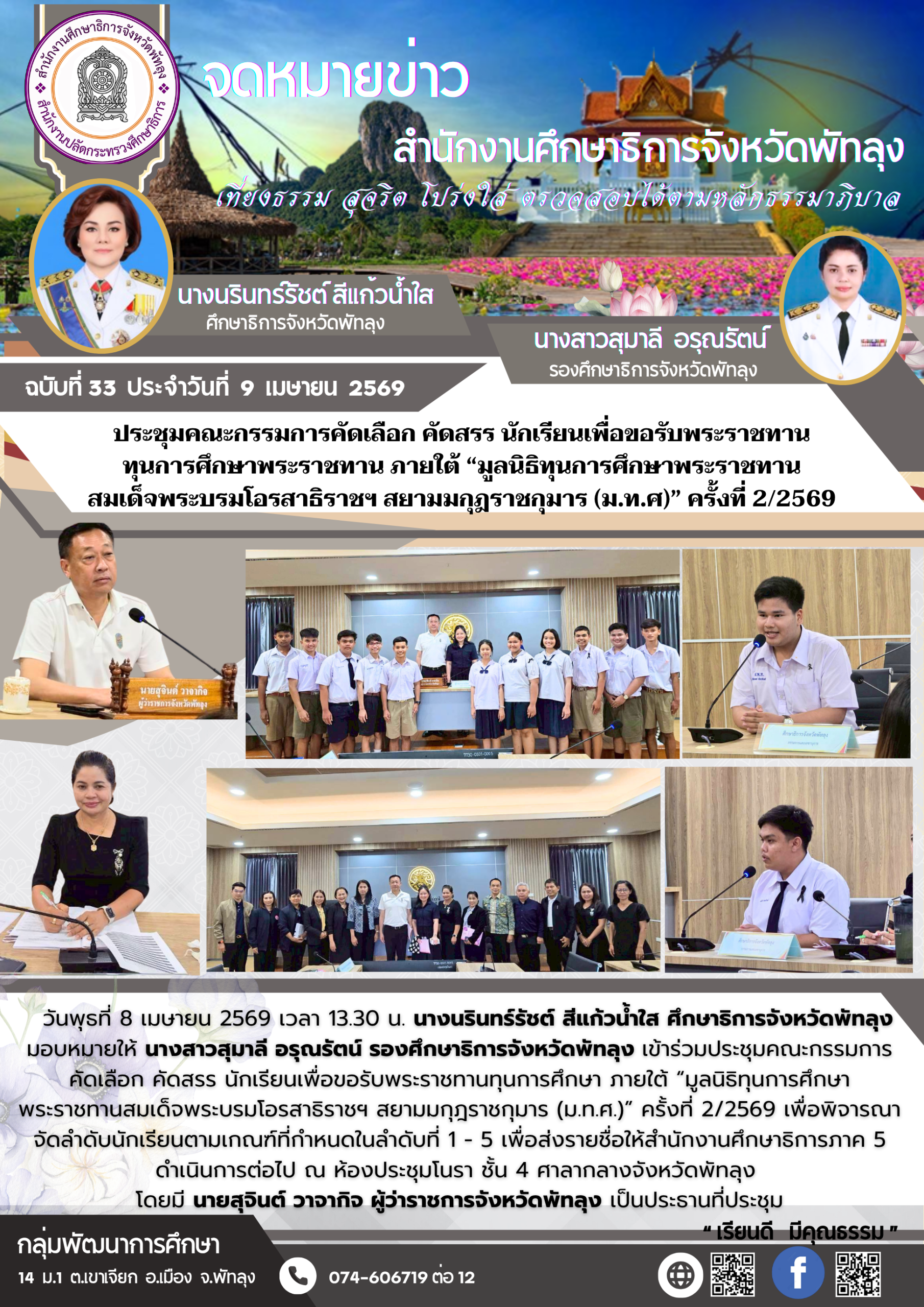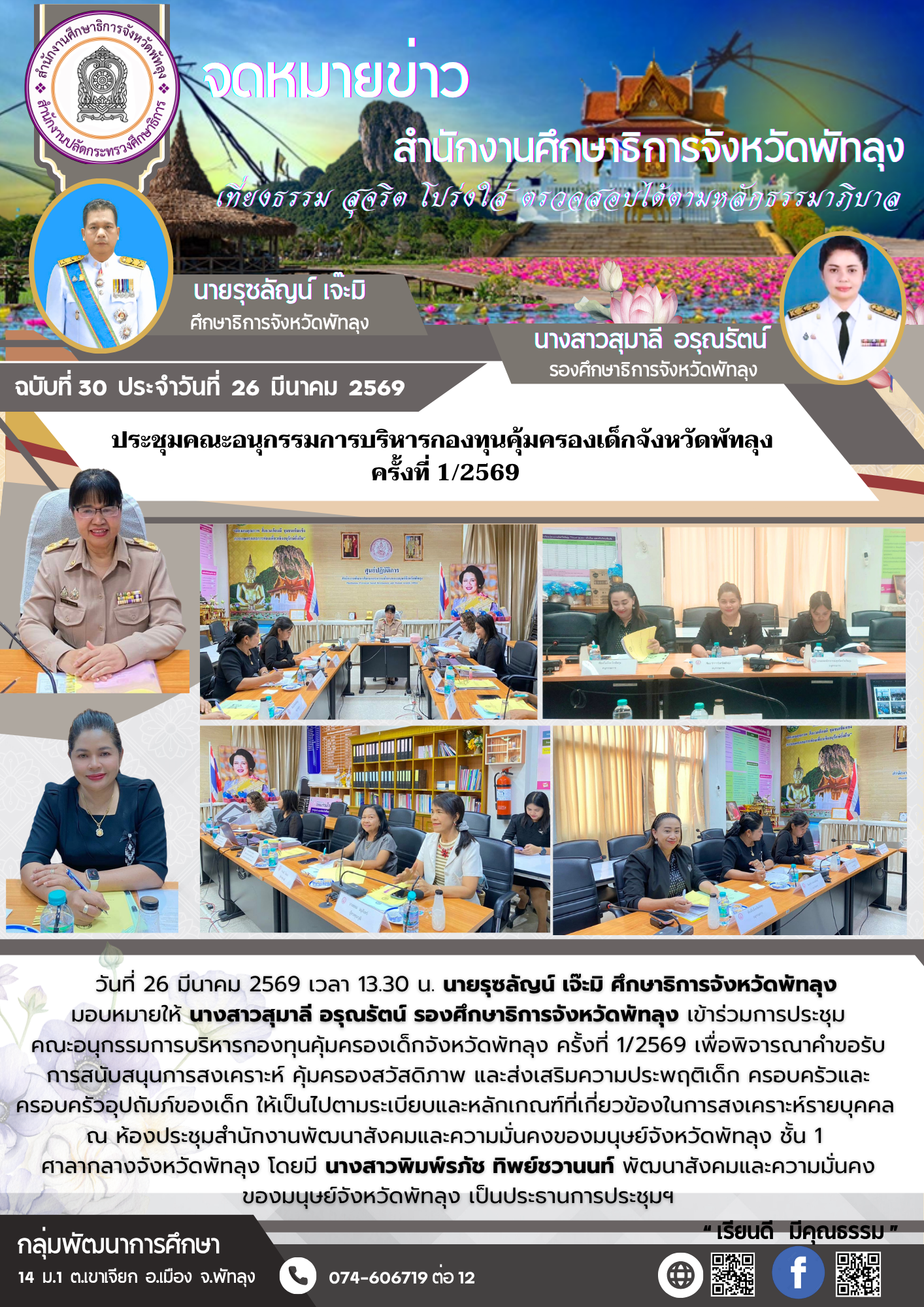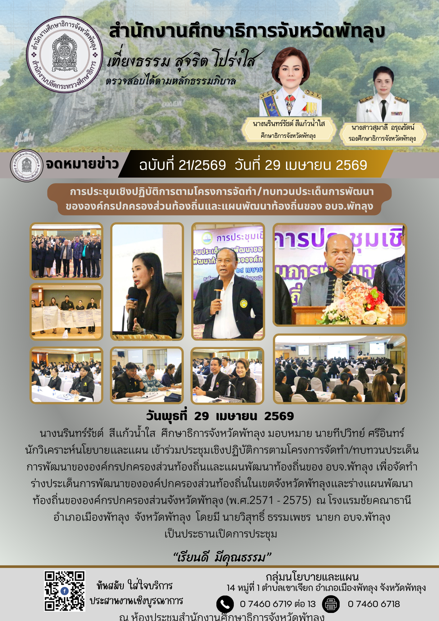 สนับสนุนการพัฒนาการศึกษาของจังหวัดพัทลุง ให้เหมาะสมกับบริบทเชิงพื้นที่ พัฒนาคนให้มีทักษะที่จำเป็น รู้เท่าทัน ตอบโจทย์ความต้องการของทุกภาคส่วน