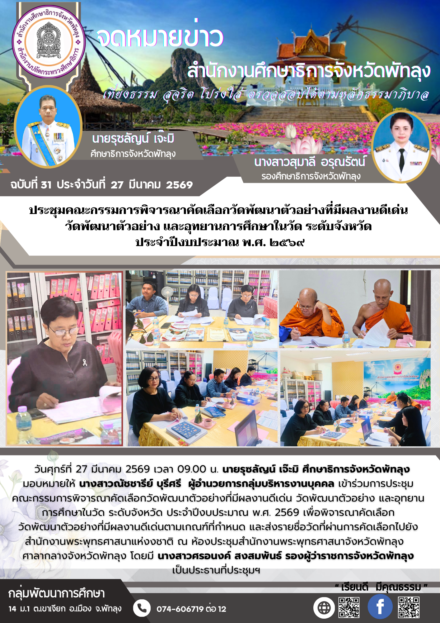 ประกาศสำนักงานศึกษาธิการจังหวัดพัทลุง เรื่อง การสรรหาผู้ทรงคุณวุฒิในคณะกรรมการศึกษาธิการจังหวัดพัทลุง