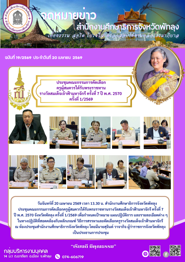 ประชุมคณะกรรมการคัดเลือกครูผู้สมควรได้รับพระราชทานรางวัลสมเด็จเจ้าฟ้ามหาจักรี ครั้งที่ 7 ปี พ.ศ. 2570 ครั้งที่ 1/2569