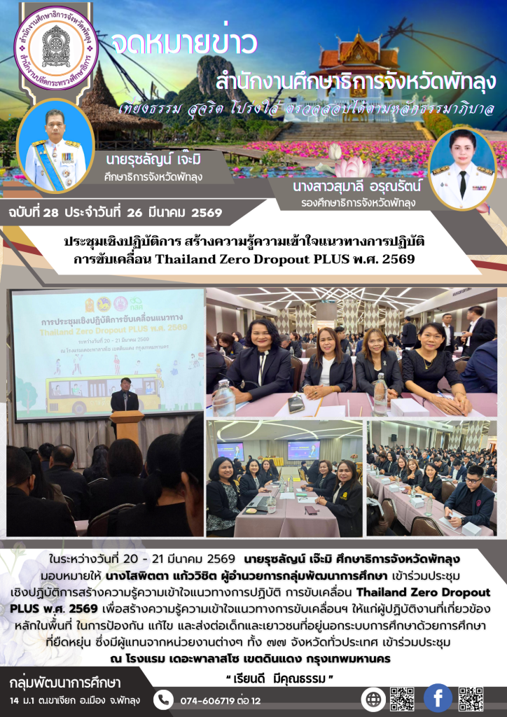 ประชุมเชิงปฏิบัติการ สร้างความรู้ความเข้าใจแนวทางการปฏิบัติการขับเคลื่อน Thailand Zero Dropout PLUS พ.ศ. 2569 / จดหมายข่าว / By admin-vik