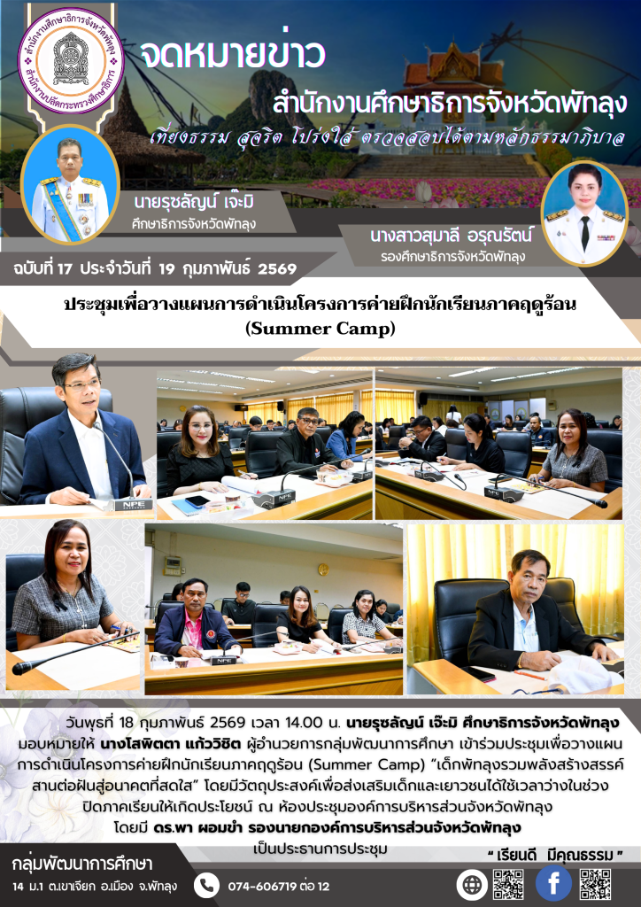 ประชุมเพื่อวางแผนการดำเนินโครงการค่ายฝึกนักเรียนภาคฤดูร้อน (Summer Camp)