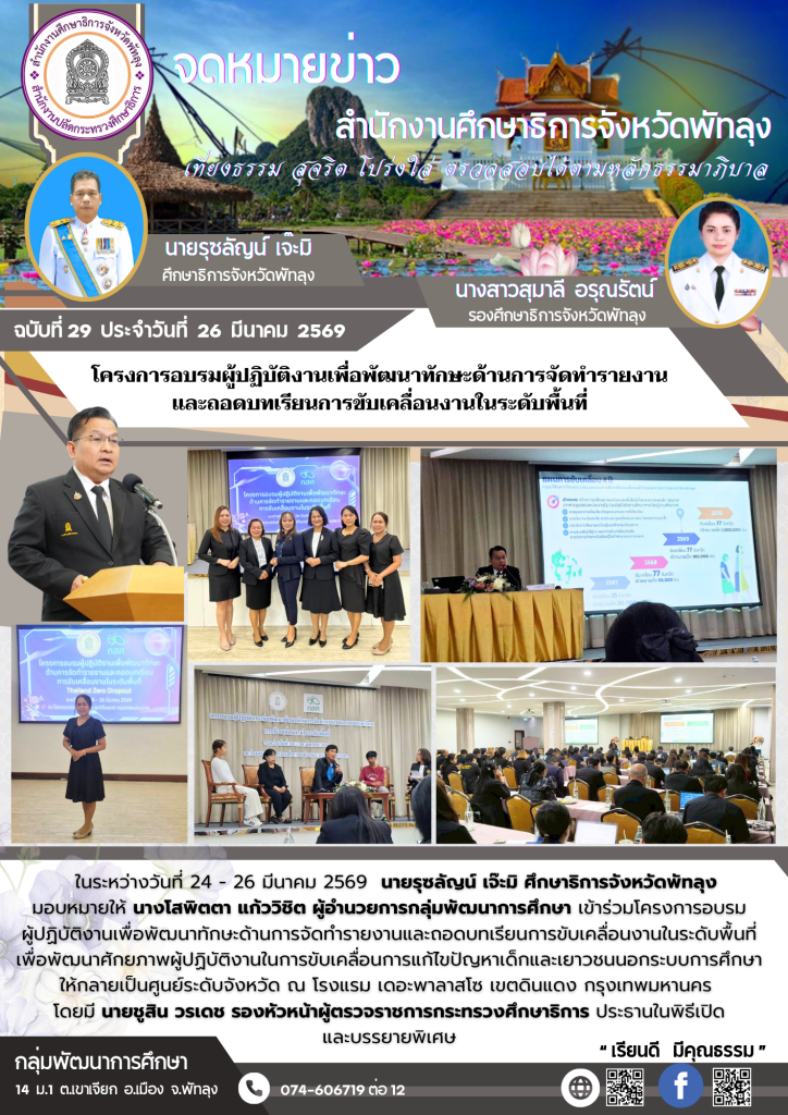 โครงการอบรมผู้ปฏิบัติงานเพื่อพัฒนาทักษะด้านการจัดทำรายงานและถอดบทเรียนการขับเคลื่อนงานในระดับพื้นที่ / จดหมายข่าว / By admin-vik