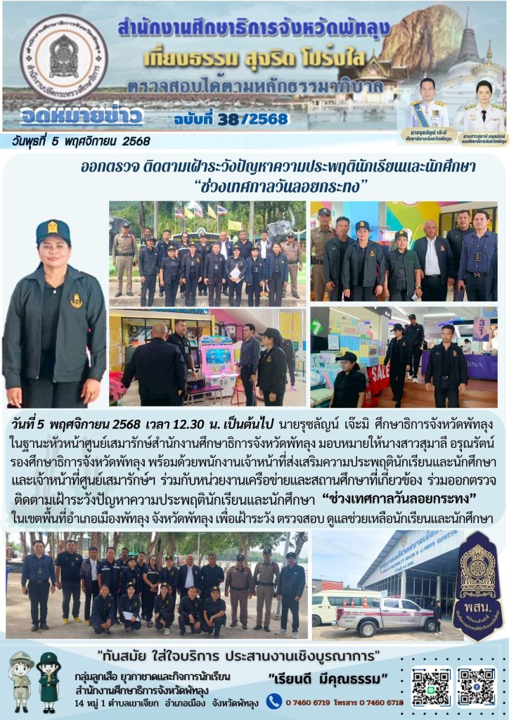 ออกตรวจ ติดตามเฝ้าระวังปัญหาความประพฤตินักเรียนและนักศึกษา “ช่วงเทศกาลวันลอยกระทง”