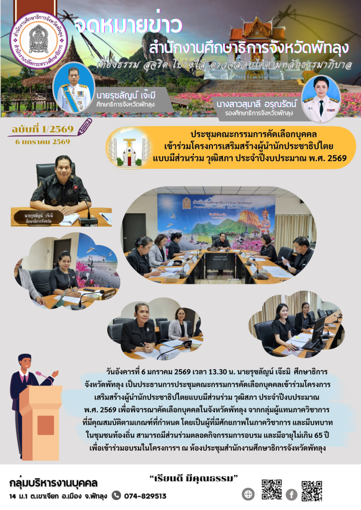 ประชุมคณะทำงานเตรียมการจัดงานวันครู จังหวัดพัทลุง ประจำปี 2569 (ครั้งที่ 1/2568) จดหมายข่าว / admin-pr2 ประชุมคณะทำงานเตรียมการจัดงานวันครู จังหวัดพัทลุง ประจำปี 2569 (ครั้งที่ 1/2568) Read More »